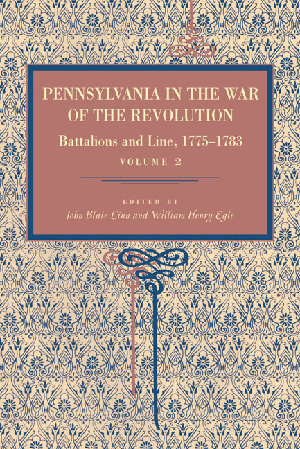 Volume 2 contains brief histories, rosters of field and staff officers, and rolls of enlisted Pennsylvanians and their ranks for each of several independent and non–state specific regiments. It also features a lengthy section composed of excerpts from orderly books and diaries of the Pennsylvania line, ranging from 1778 to 1782.